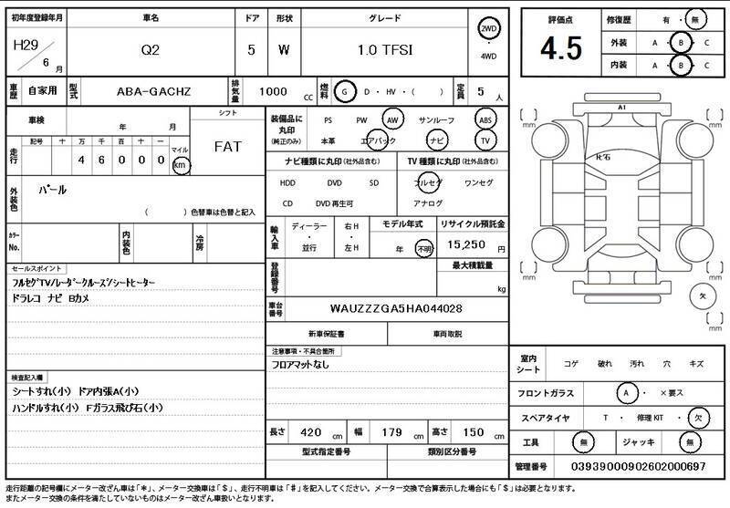 This 2017 AUDI Q2 with the model code GACHZ is equipped with a 1,000cc Gasoline engine and has a total mileage of 46,000km.