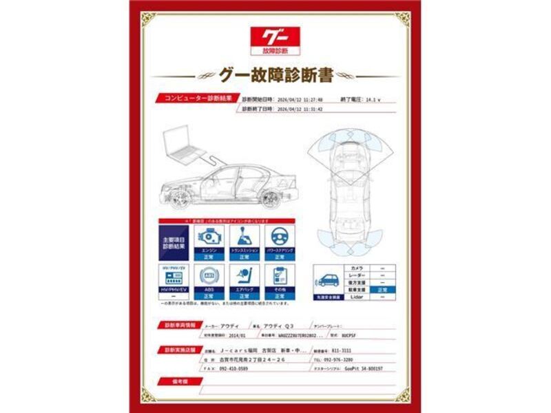 This 2014 AUDI Q3 with the model code 8UCPSF is equipped with a 2,000cc Gasoline engine and has a total mileage of 48,200km.