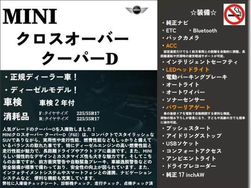 This BMW MINI with the model code YT20 is equipped with a 1,990cc Diesel engine and has a total mileage of 73,500km.