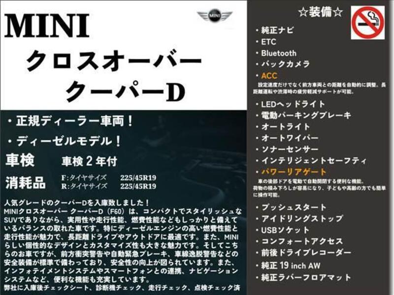 This BMW MINI with the model code YT20 is equipped with a 1,990cc Diesel engine and has a total mileage of 104,500km.