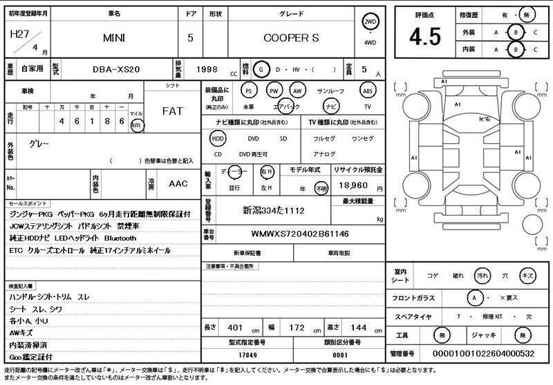 This 2015 BMW MINI with the model code XS20 is equipped with a 1,998cc Gasoline engine and has a total mileage of 47,000km.