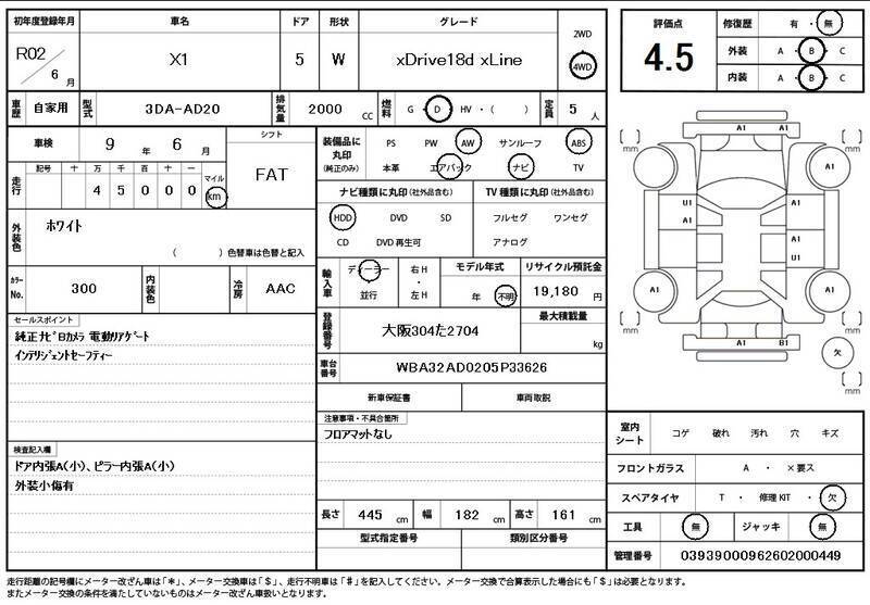 This 2020 BMW X1 with the model code AD20 is equipped with a 2,000cc Diesel engine and has a total mileage of 45,000km.