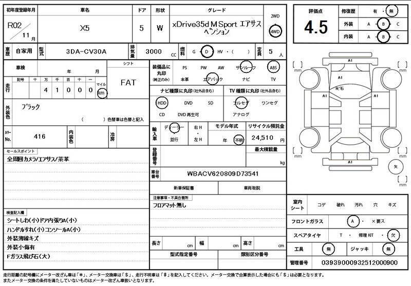 This 2020 BMW X5 with the model code CV30A is equipped with a 3,000cc Diesel engine and has a total mileage of 41,000km.