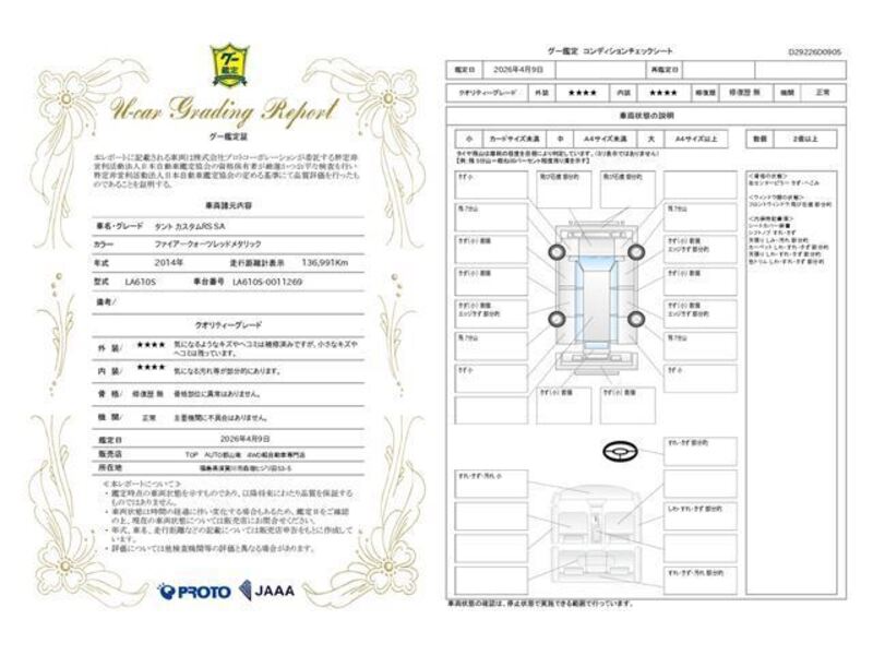 This 2014 DAIHATSU TANTO with the model code LA610S is equipped with a 660cc Gasoline engine and has a total mileage of 137,000km.