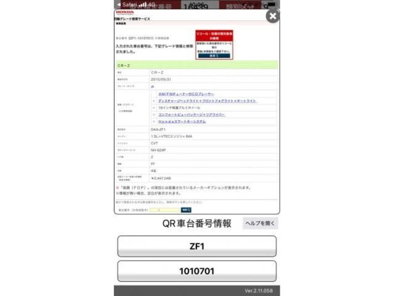 This 2010 HONDA CR-Z with the model code ZF1 and has a total mileage of 130,180km.