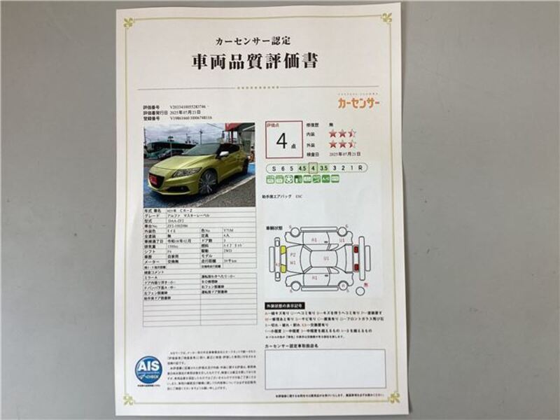 This 2013 HONDA CR-Z with the model code ZF2 is equipped with a 1,500cc Gasoline engine and has a total mileage of 39,000km.