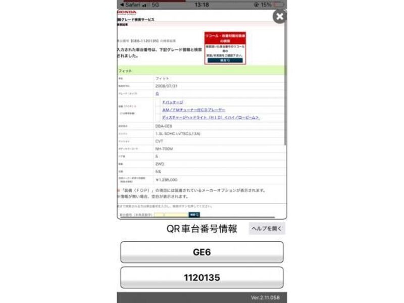 This 2008 HONDA FIT with the model code GE6 is equipped with a 1,300cc Gasoline engine and has a total mileage of 145,778km.