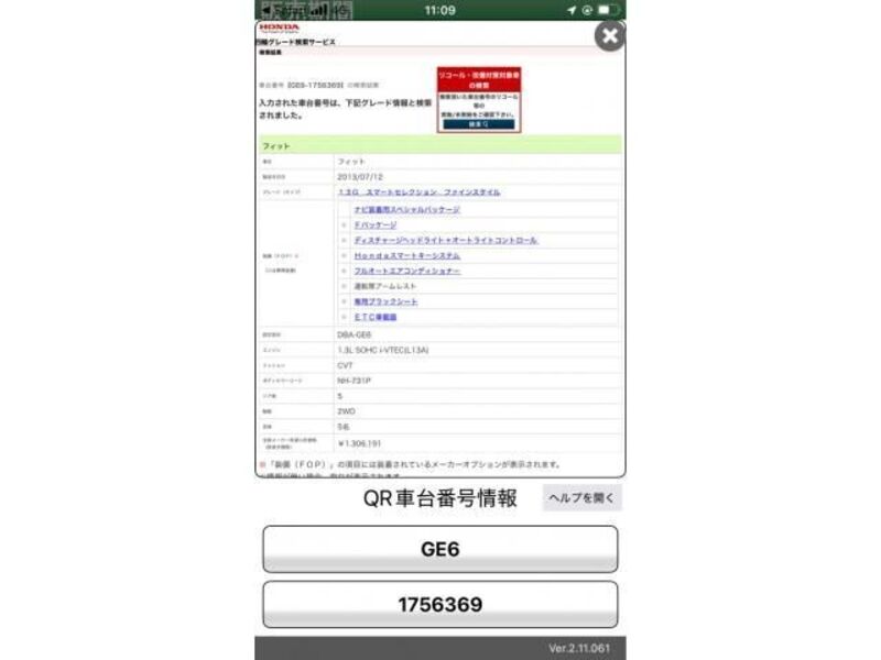 This 2013 HONDA FIT with the model code GE6 is equipped with a 1,300cc Gasoline engine and has a total mileage of 129,065km.