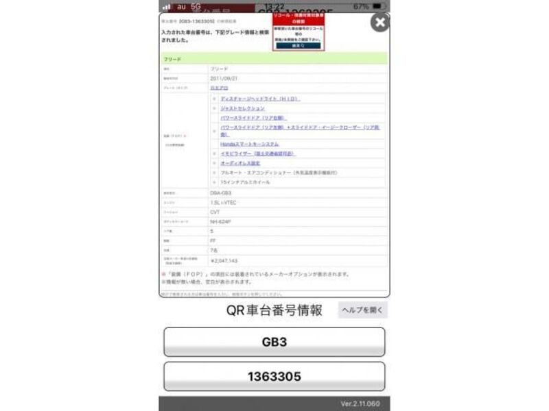 This 2011 HONDA FREED with the model code GB3 is equipped with a 1,500cc Gasoline engine and has a total mileage of 160,235km.