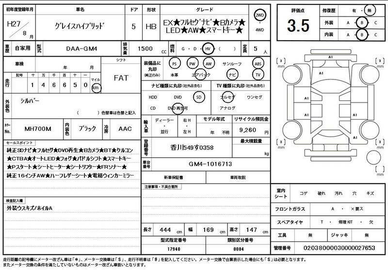 This 2015 HONDA GRACE with the model code GM4 is equipped with a 1,500cc Electric engine and has a total mileage of 147,000km.