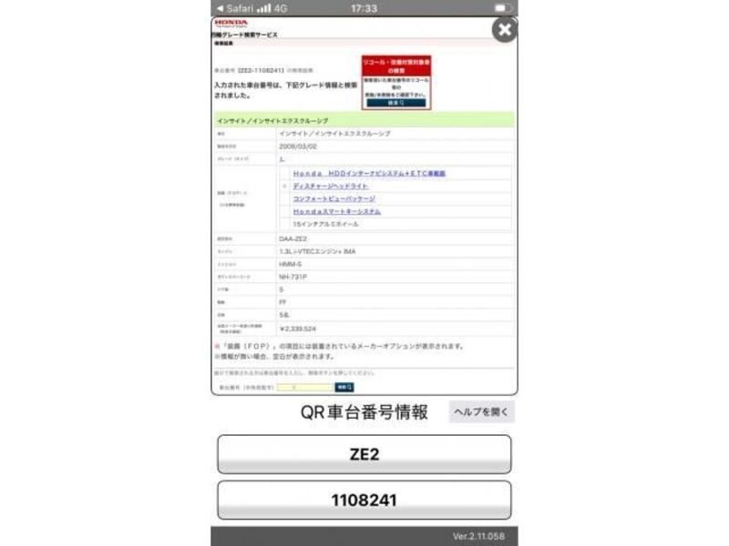 This 2009 HONDA INSIGHT with the model code ZE2 and has a total mileage of 104,220km.