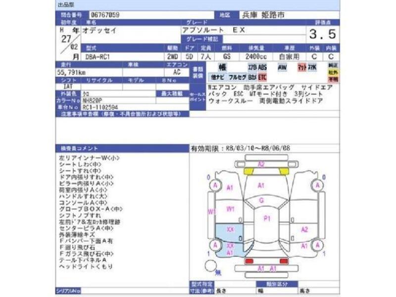 2015 AT HONDA ODYSSEY DBA-RC1