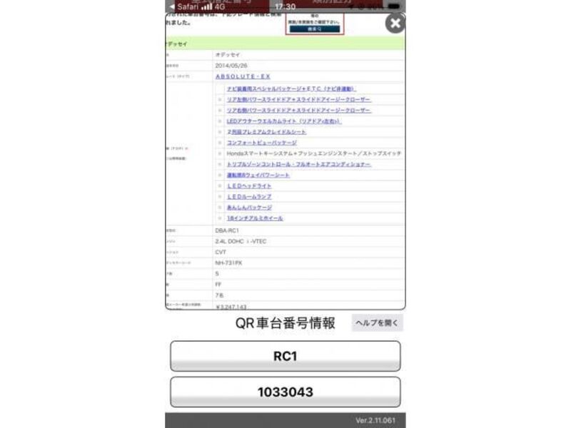 This 2014 HONDA ODYSSEY with the model code RC1 is equipped with a 2,400cc Gasoline engine and has a total mileage of 97,195km.