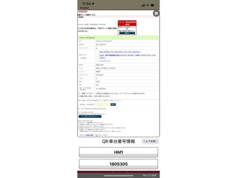 This 2011 HONDA VAMOS with the model code HM1 is equipped with a 660cc Gasoline engine and has a total mileage of 65,683km.