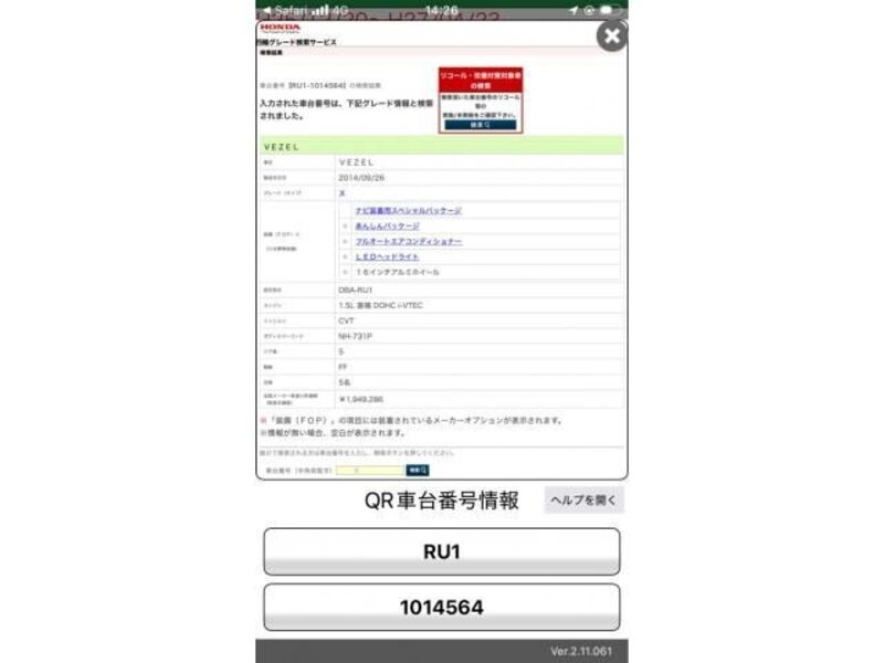 2014 AT HONDA VEZEL RU1