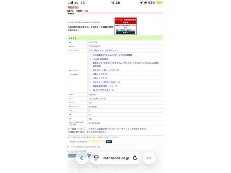 2018 AT HONDA VEZEL RU1