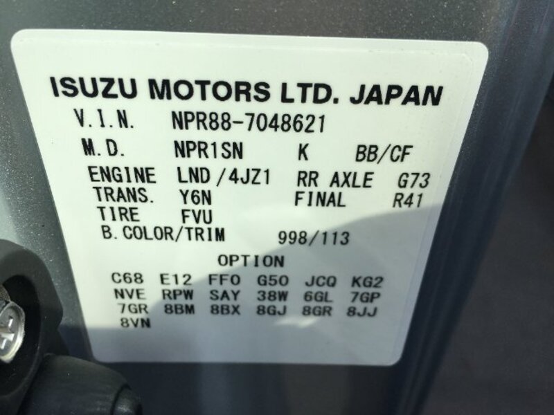 | Chassis No | NPR88AM****Full Chassis No_will be shown on Invoice |