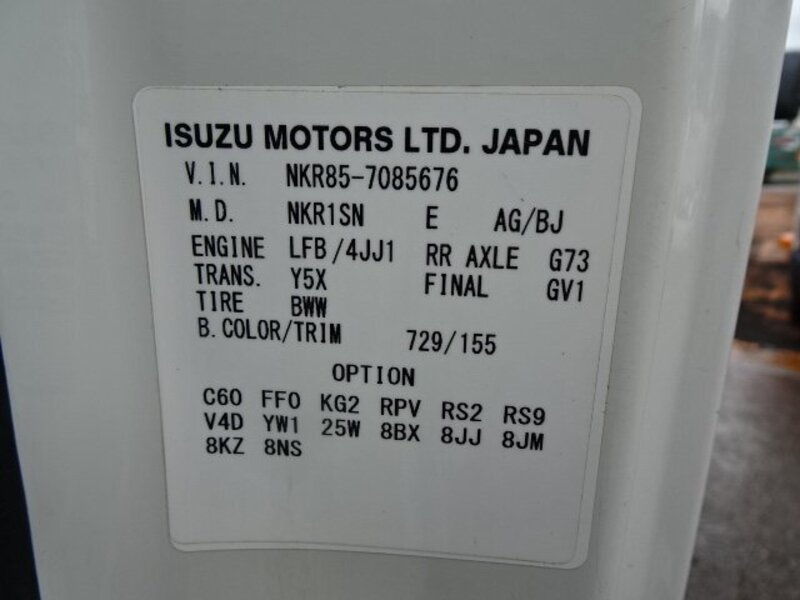 | Chassis No | NKR85AD****Full Chassis No_will be shown on Invoice |