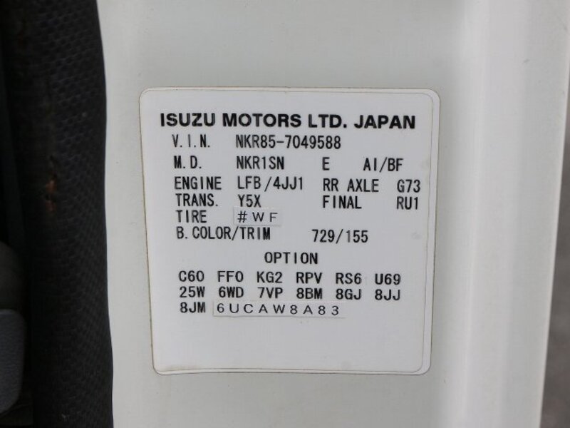 | Chassis No | NKR85A-****Full Chassis No_will be shown on Invoice |
