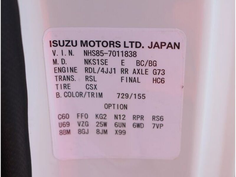 | Chassis No | NHS85-7****Full Chassis No_will be shown on Invoice |