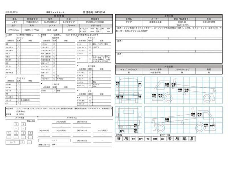 This 2006 ISUZU FORWARD with the model code FSR34G4Z is equipped with a 7,790cc Diesel engine and has a total mileage of 277,762km.