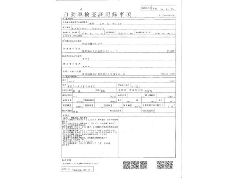 | Chassis No | FRR90-7****Full Chassis No_will be shown on Invoice |