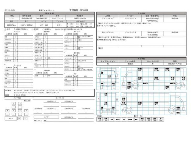 This 2016 ISUZU FORWARD with the model code FRR90T2 is equipped with a 5,190cc Diesel engine and has a total mileage of 442,265km.