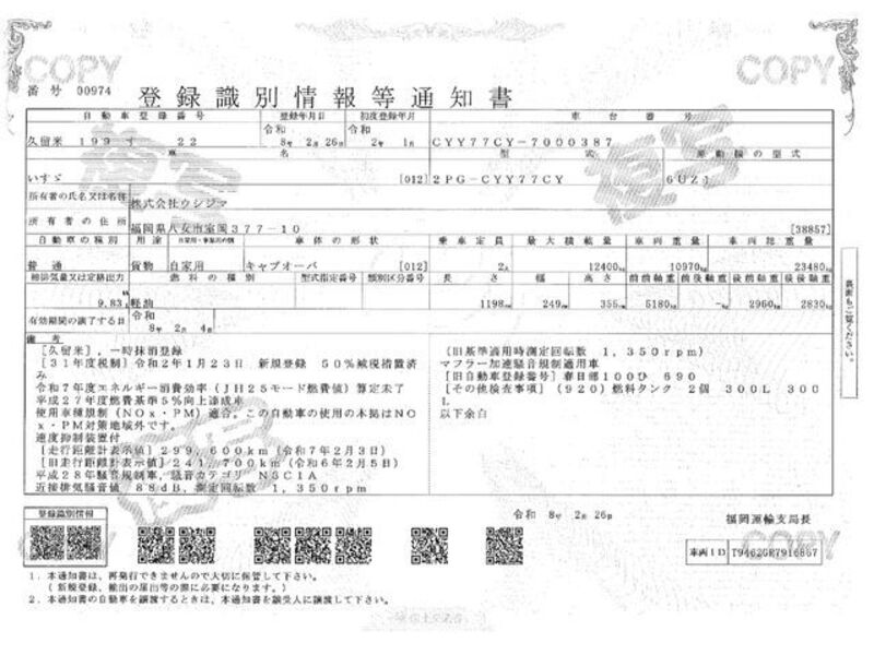 | Chassis No | CYY77CY****Full Chassis No_will be shown on Invoice |