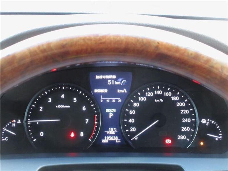 This 2015 LEXUS LS with the model code UVF45 is equipped with a 5,000cc Gasoline engine and has a total mileage of 195,638km.