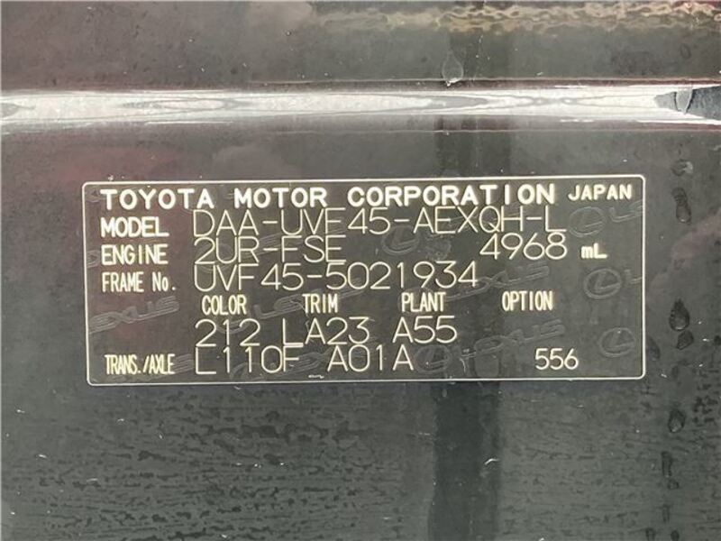 This 2016 LEXUS LS with the model code UVF45 is equipped with a 5,000cc Gasoline engine and has a total mileage of 132,608km.