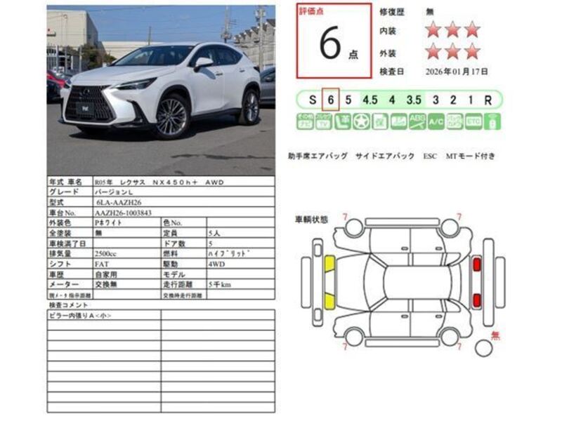 This 2023 LEXUS NX with the model code AAZH26 is equipped with a 2,500cc Gasoline engine and has a total mileage of 4,850km.