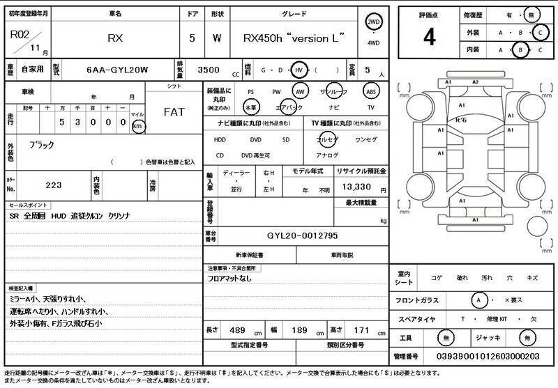 This 2020 LEXUS RX with the model code GYL20W is equipped with a 3,500cc Electric engine and has a total mileage of 53,000km.