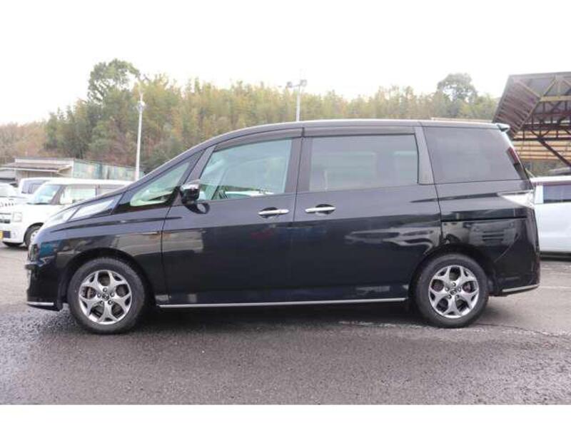 This is a 8-seat mid-class Mazda minivan with a unique stylish exterior and a spacious, comfortable interior that can accommodate up to eight (8) people. The third row of seats can be slid and put away to turn the second row of seats into “living room mode,” providing ample legroom. Its main features include the motorized sliding doors on both sides, which allow boarding from both the left and the right.