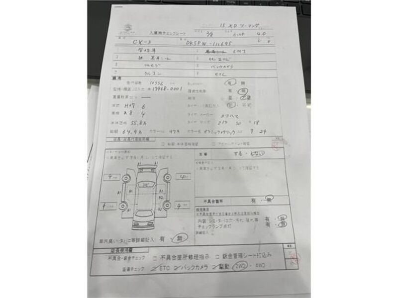 This 2015 MAZDA CX-3 with the model code DK5FW is equipped with a 1,500cc Diesel engine and has a total mileage of 105,556km.
