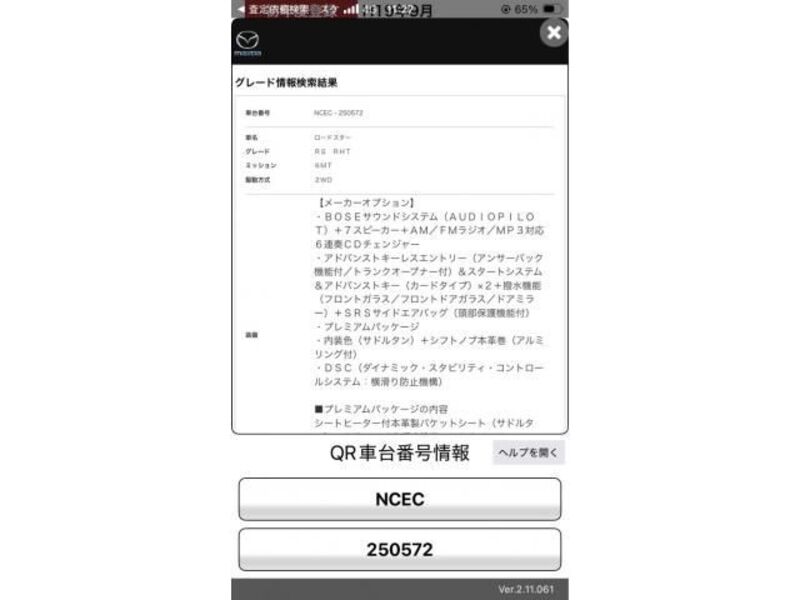 This 2007 MAZDA ROADSTER with the model code NCEC is equipped with a 2,000cc Gasoline engine and has a total mileage of 132,334km.