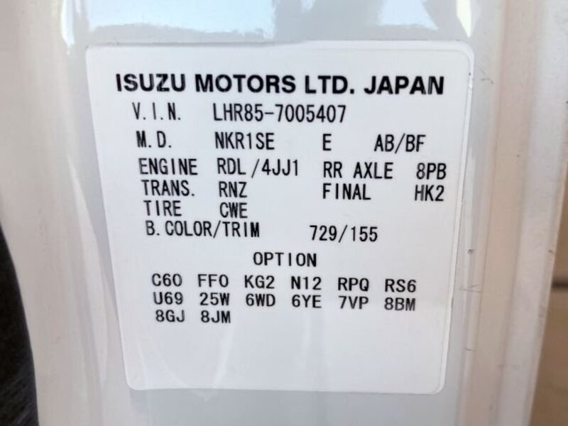 | Chassis No | LHR85A-****Full Chassis No_will be shown on Invoice |