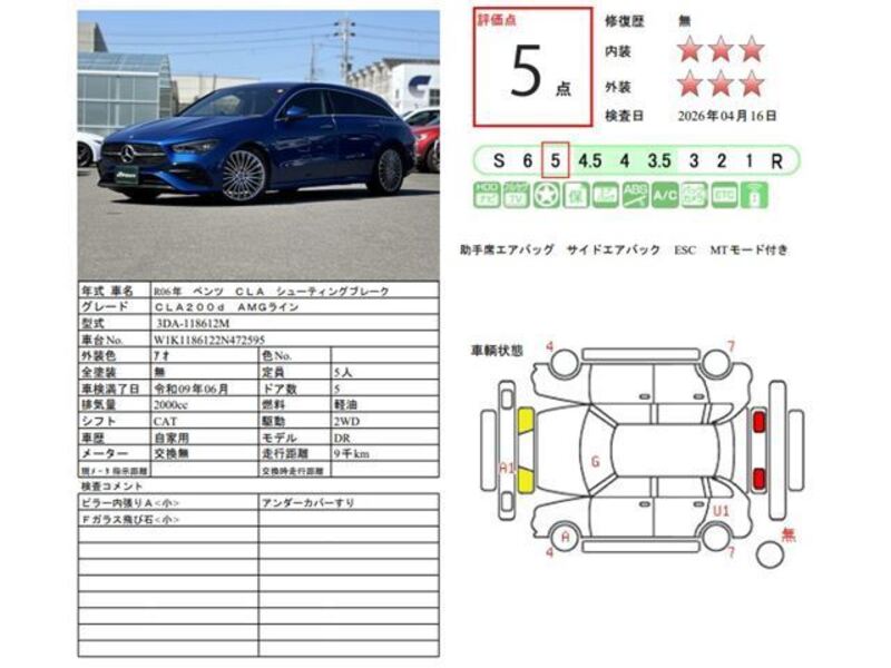 This 2024 MERCEDES-BENZ CLA-CLASS with the model code 118612M is equipped with a 2,000cc Diesel engine and has a total mileage of 8,990km.