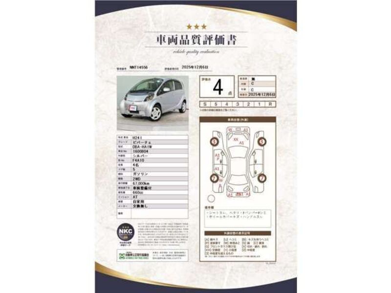 This 2012 MITSUBISHI I with the model code HA1W is equipped with a 660cc Gasoline engine and has a total mileage of 67,000km.
