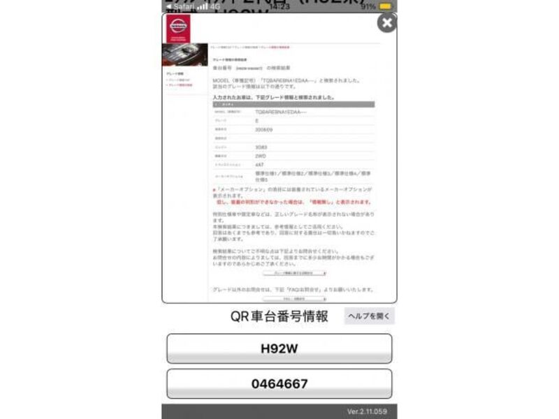 | Body Type | -- | Chassis No | H92W-05**** | Model Code | H92W | Engine model | -- | Steering | -- |