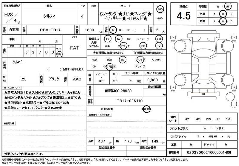 This 2016 NISSAN SYLPHY with the model code TB17 is equipped with a 1,800cc Gasoline engine and has a total mileage of 53,000km.