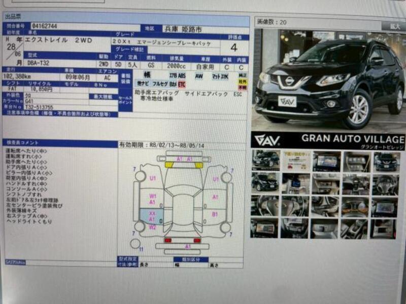 This 2016 NISSAN X-TRAIL with the model code DBA-T32 is equipped with a 2,000cc Gasoline engine and has a total mileage of 102,000km.