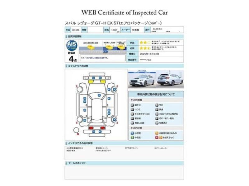 This 2021 SUBARU LEVORG with the model code VN5 is equipped with a 1,800cc Gasoline engine and has a total mileage of 37,384km.