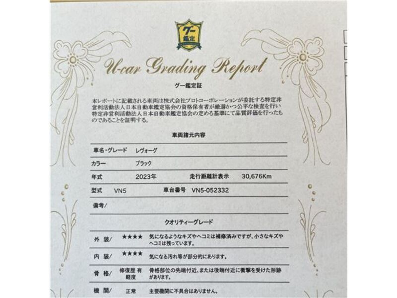 This 2023 SUBARU LEVORG with the model code VN5 is equipped with a 1,800cc Gasoline engine and has a total mileage of 30,680km.