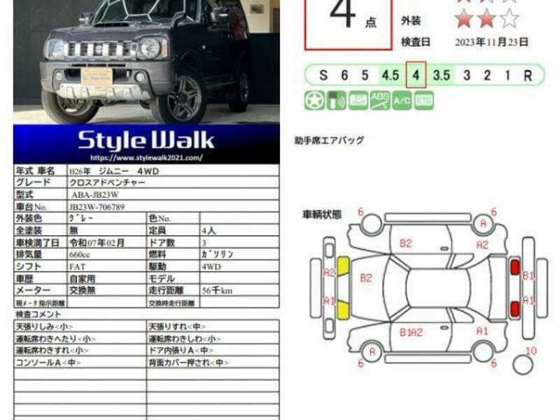 This 2014 SUZUKI JIMNY with the model code ABA-JB23W is equipped with a 660cc Gasoline engine and has a total mileage of 56,192km.