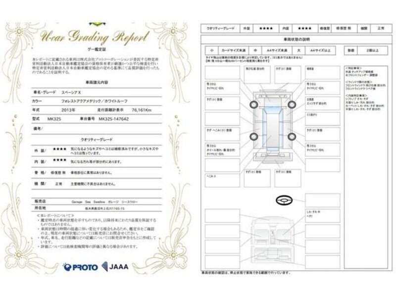 This 2013 SUZUKI SPACIA with the model code MK32S is equipped with a 660cc Gasoline engine and has a total mileage of 76,300km.