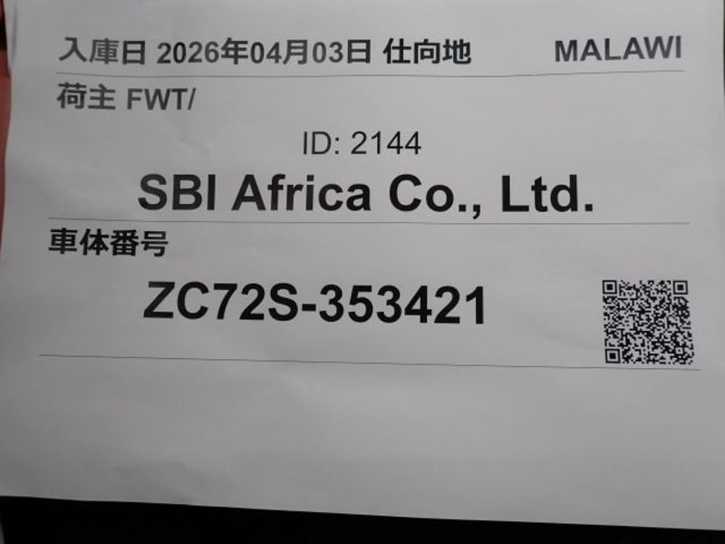 | Chassis No | ZC72S-3****Full Chassis No_will be shown on Invoice |
