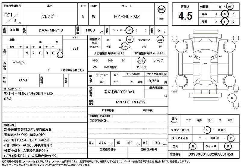 This 2019 SUZUKI XBEE with the model code MN71S is equipped with a 1,000cc Electric engine and has a total mileage of 47,000km.