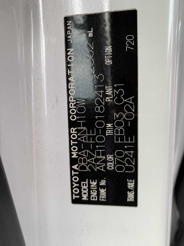 | Chassis No | ANH10-0****Full Chassis No_will be shown on Invoice |