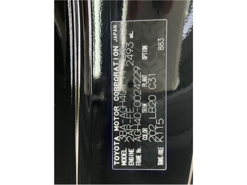 | Chassis No | AGH40-0****Full Chassis No_will be shown on Invoice |