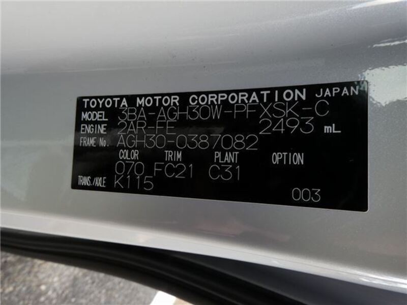 | Chassis No | AGH30-0****Full Chassis No_will be shown on Invoice |